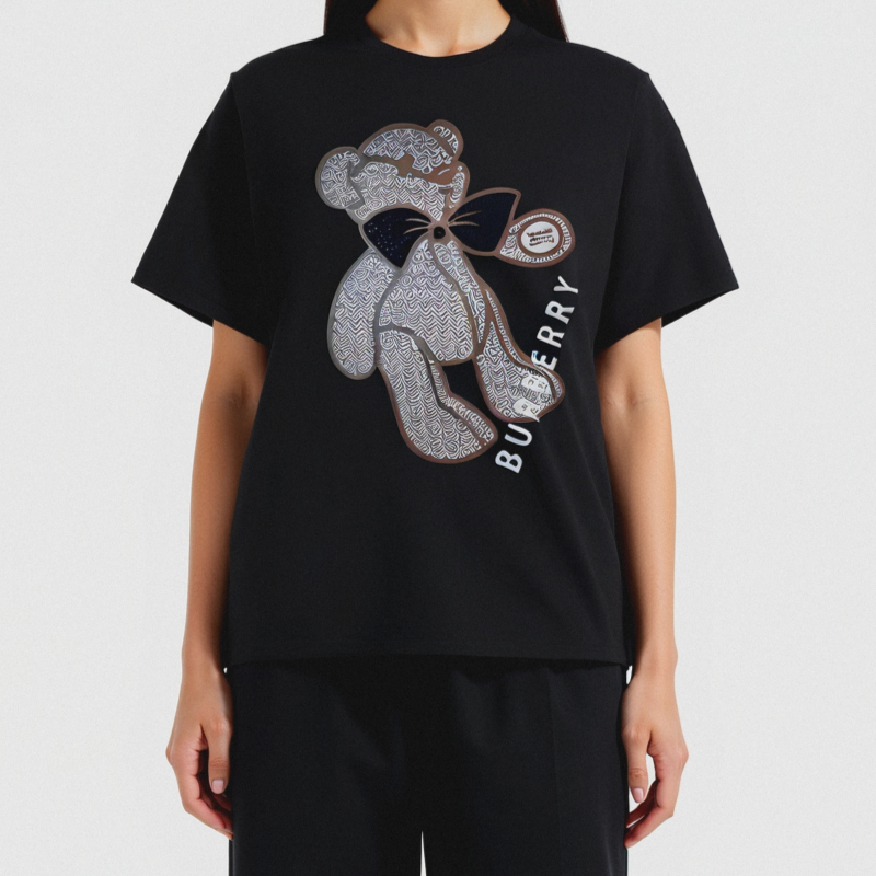 • ظاهر منحصربه‌فرد: چاپ خرس قهوه‌ای روی زمینه مشکی جلوه‌ای مدرن و جذاب دارد که به راحتی با انواع شلوار و کفش ست می‌شود.