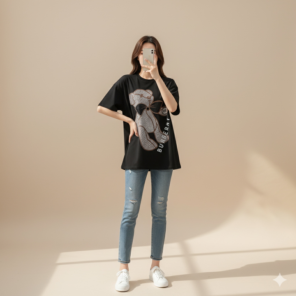 تیشرت لانگ بوربری یک گزینه ترندی و کاربردی برای کسانی است که می‌خواهند استایل خیابانی (streetwear) و راحتی روزمره را ترکیب کنند. این تیشرت لانگ با زمینه مشکی و چاپ برجسته خرس به رنگ قهوهای و کلمه انگلیسی BURBERY، تمرکز بصری قوی‌ای روی بخش جلو ایجاد می‌کند و بلافاصله توجه را جلب می‌نماید. اگر به دنبال خرید تیشرت لانگ بوربری هستید، این محصول به‌خاطر ترکیب کیفیت پارچه، چاپ پایدار و برش لانگ انتخابی مناسب خواهد بود.