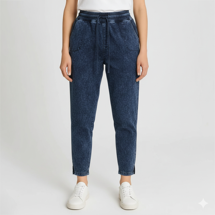 گاهی انتخاب میان استایل رسمی و راحتی سخت است، اما با شلوار مام فیت طرح جین آبی تیره نیازی به انتخاب ندارید. این شلوار در میانه این دو دسته قرار میگیرد و با ظاهر جین مانند خود، استایلی شیک ارائه میدهد، در حالی که بافت لطیفش، راحتی یک شلوار خانگی را تداعی میکند. برای خانمهایی که دوست دارند همیشه خوشپوش باشند ولی از پوشیدن لباسهای خشک خسته شدهاند، این شلوار زنانه یک انتخاب عالی است.